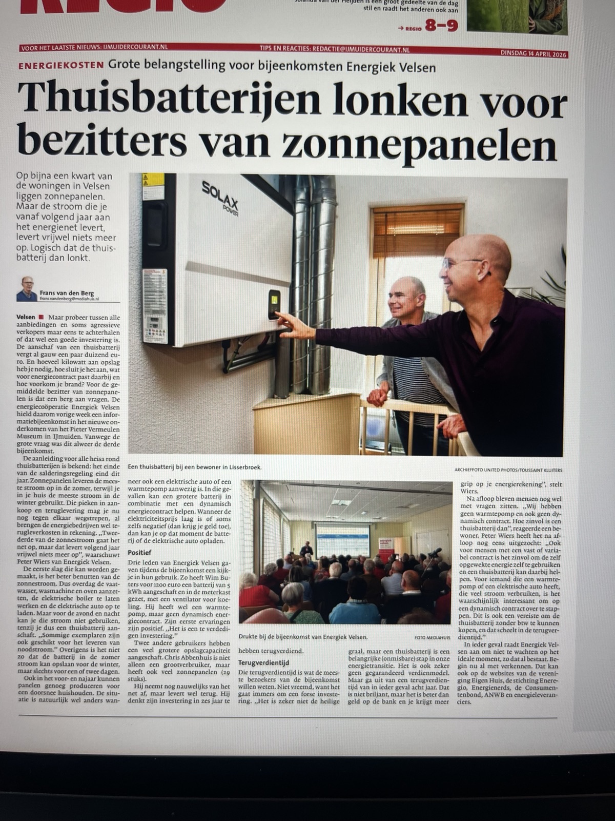 Mooi artikel IJmuider Courant thuisbatterijen